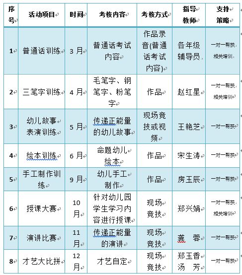 为进一步促进我院新疆籍学生全面发展,鼓励其刻苦学习,扎实基本功,提高学生综合素质和职业竞争力,更好地适应社会需求,经调研,44118太阳成城集团特制定“幼师素养提升工程之月训计划”活动方案,以达到学练结合、以赛促学、学赛结合的效果。具体如下: